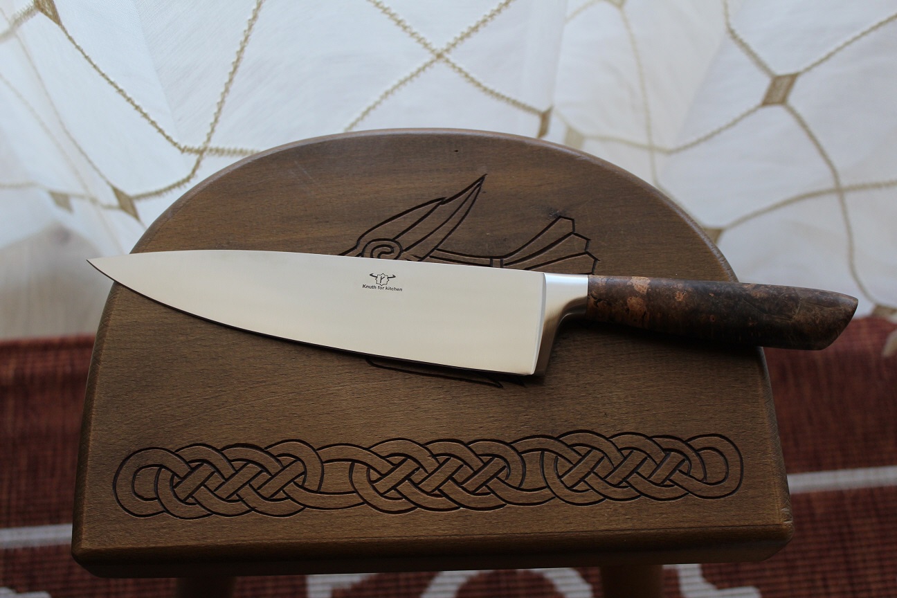 Koch- und Küchenmesser sollten nie zum Hacken verwendet werden; dafür sind die Schneidenwinkel nicht ausgelegt. Zum Hacken gibt es spezielle Hackmesser und –beile. |